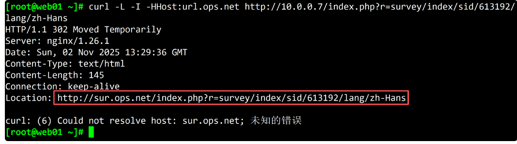 结果:http://demo:27610/url/bbb10.现有两台服务器,想要实现http://console.ops.net/index.php?r=sur/index/sid/613192/lang/zh-Hans若访问资源为/index.php?r=survey...则跳转到http://sur.ops.net/index.php?
