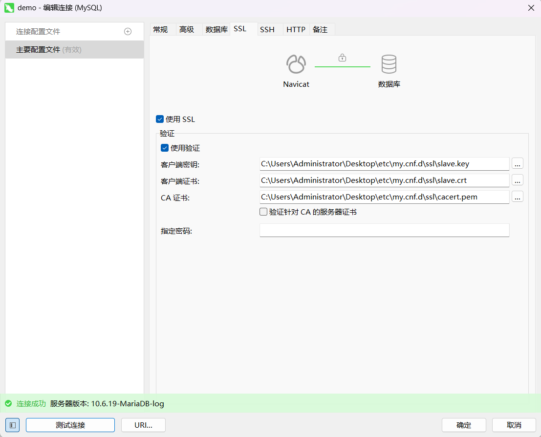 -> MASTER_SSL_CA = '/etc/my.cnf.d/ssl/cacert.pem',