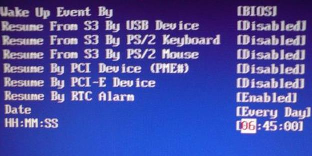 假如你需要每天都定时开机,就选择 Every Day,,你如果想要在每天 6:45 开机,就通过数字键输入 06:15:00,最后,一般按 F10 进行保存,重启电脑后生效。